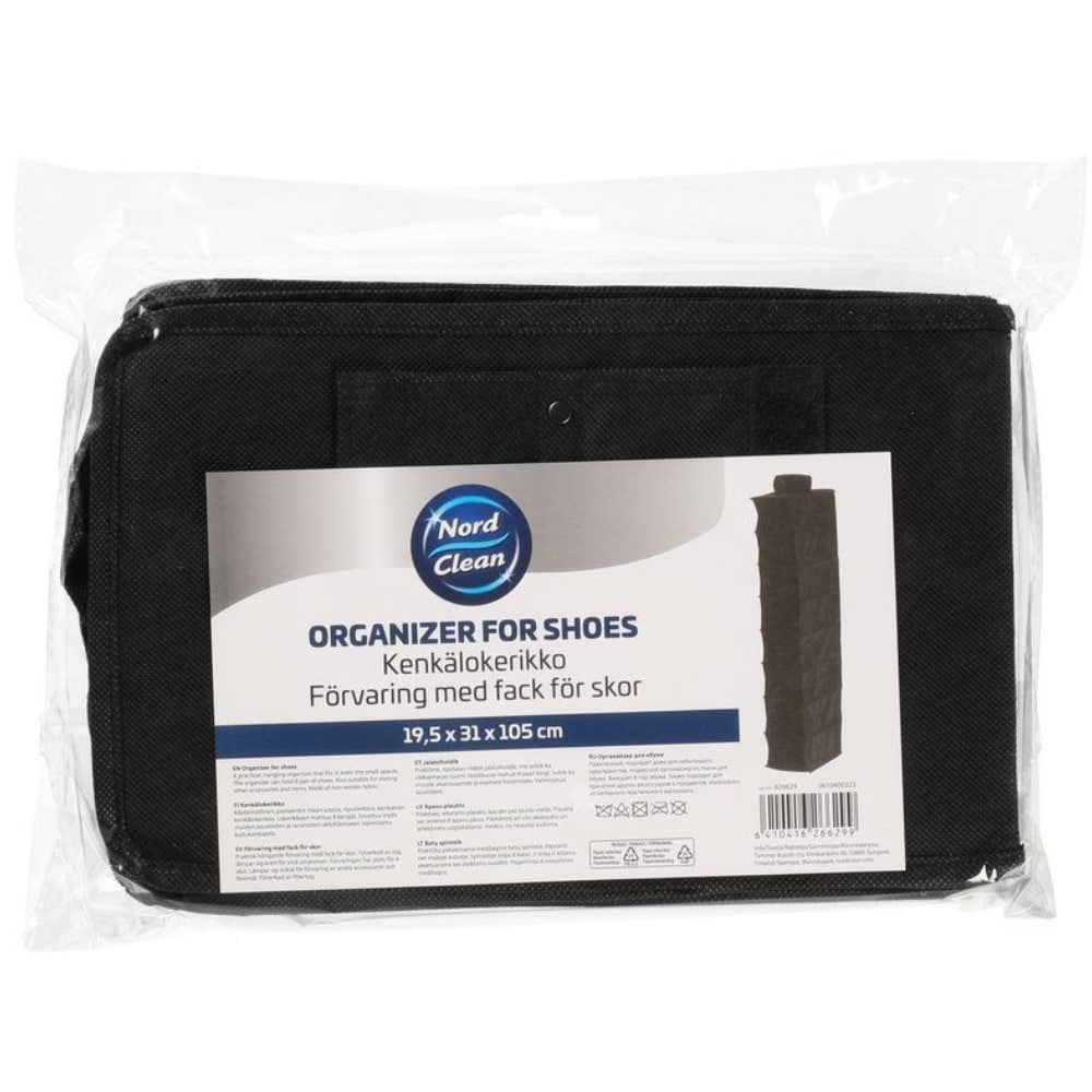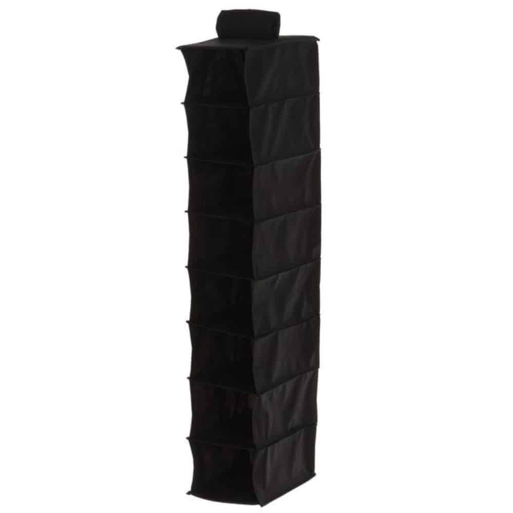Lokerikko kengille 8 tasoa musta on käytännöllinen, pieneenkin tilaan sopiva ripustettava kankainen kenkälokerikko. Lokerikkoon mahtuu 8 kengät. Roikkuva laatikko soveltuu myös muiden asusteiden ja tavaroiden säilyttämiseen. Valmistettu kuitukankaasta. Menee pieneen tilaan kasattuna.
