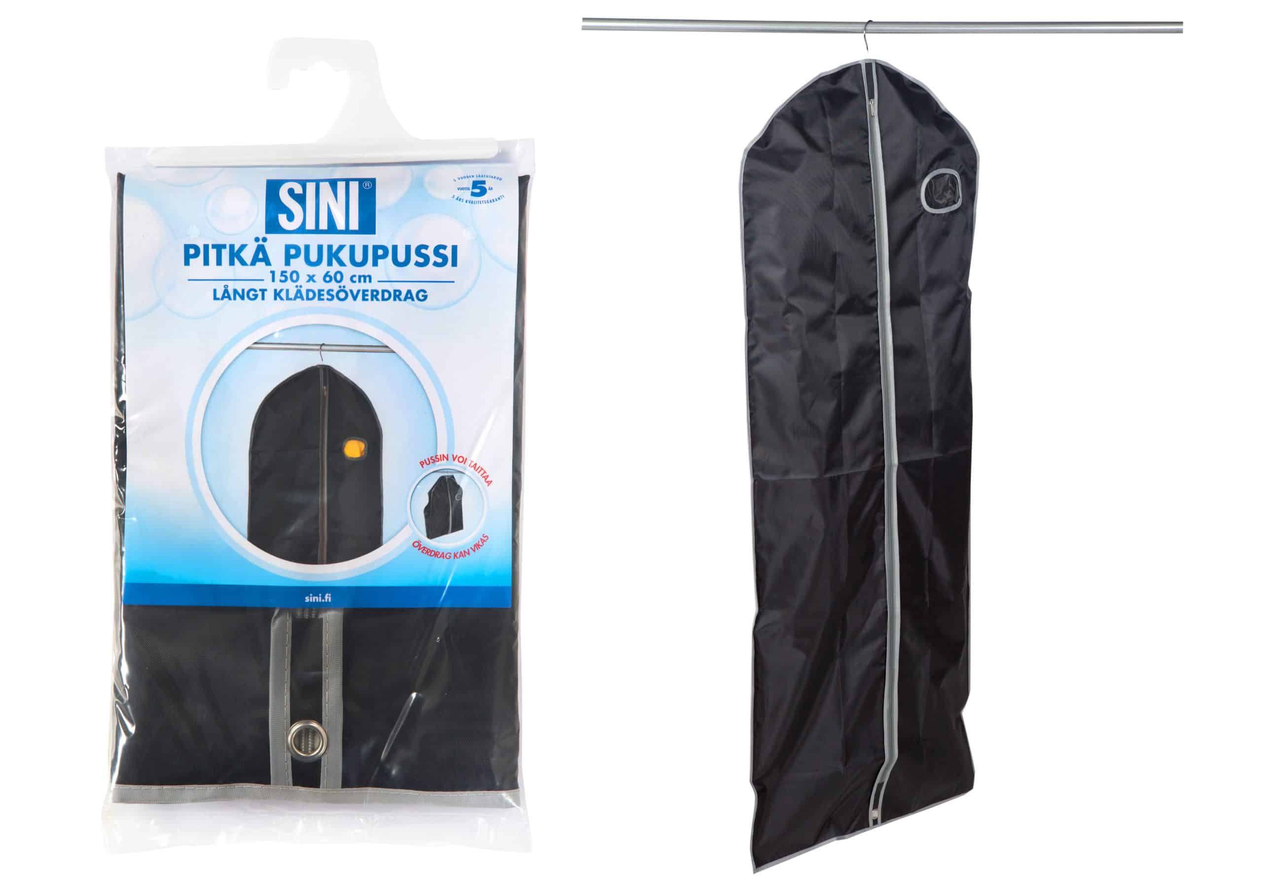 Pitkä pukupussi sopii pitkien takkien ja mekkojen säilytykseen vaatehuoneessa, -kaapissa tai varastossa.