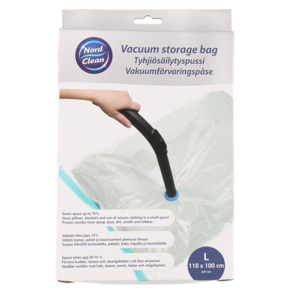 Alin hinta 30 päivän ajalta ( 16.2.2023 ): 5,90 €Nord Clean Tyhjiöpussit ovat kätevä ja nopea tapa säästää tilaa varastoinnissa. Säästää tilaa jopa 75 %. Erinomainen tuote erityisesti kodin tekstiileille ja kausivaatteille. Pakkaa tuotteet pussiin ja poista ylimääräinen ilma pussista pölynimurilla. Pussi suojaa tekstiilejä pölyltä, homeelta, hajuilta ja kosteudelta. Vahvuus 0,07 mm. Koko L 110 x 100 cm.