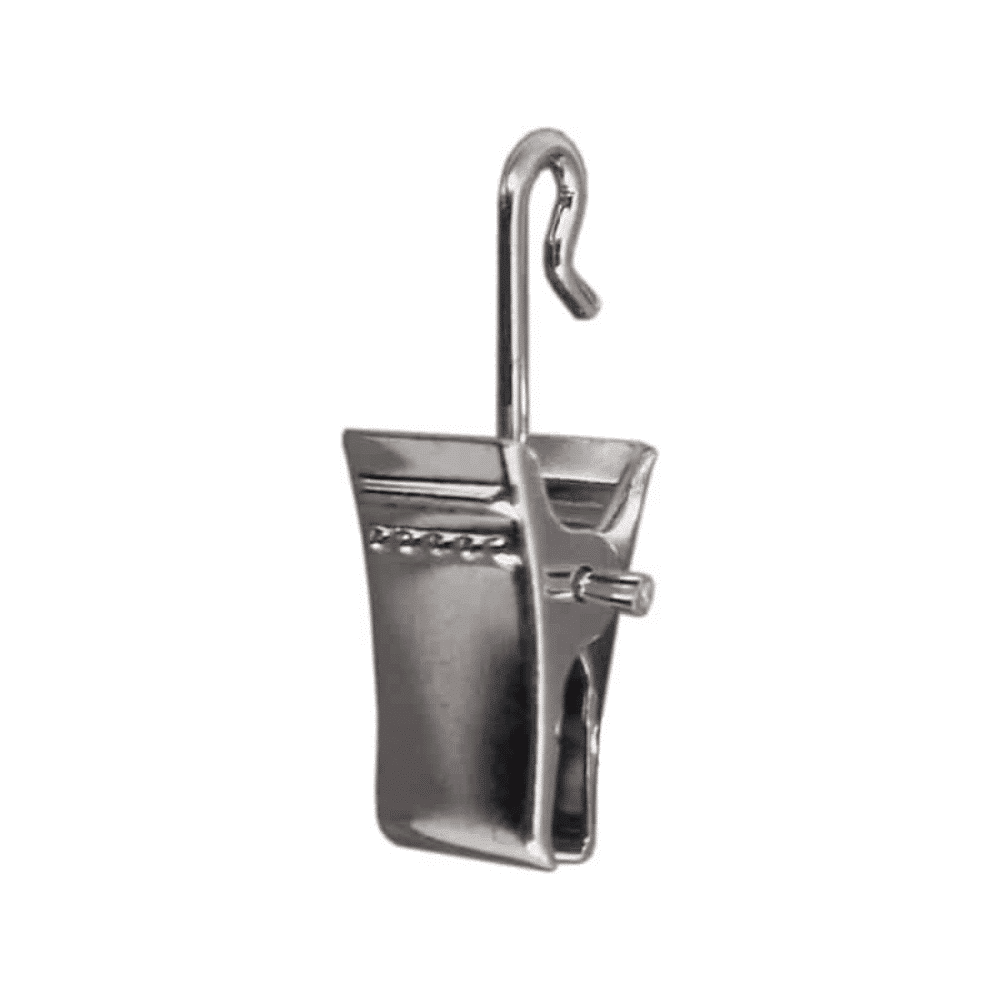 - Helppo asennus: Koukullinen rakenne mahdollistaa nipistimen kiinnittämisen verhokiskon liukuun myös silloin, kun liu’ut ovat jo paikallaan kiskossa.