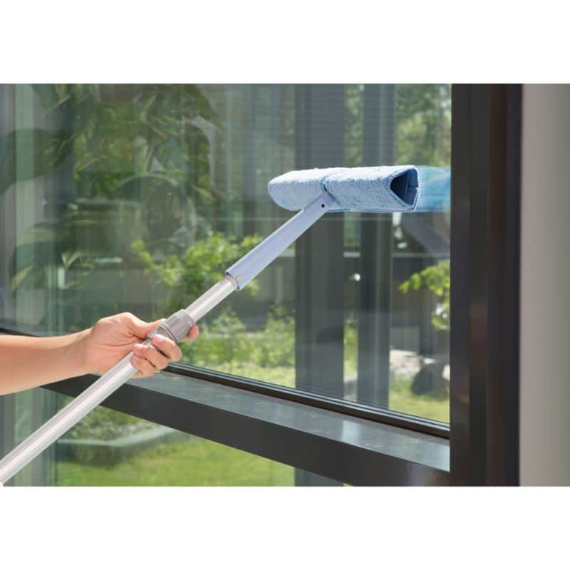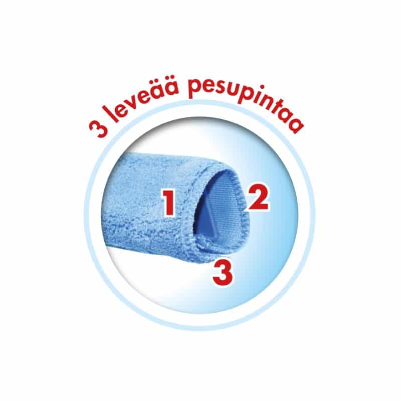 Kostuta ikkunanpesin vedessä ja purista ylimääräinen vesi pois. Pese ikkuna. Huuhtele pesin ja vaihda pesuvesi kyllin usein, jotta saat puhdasta jälkeä kertapesulla. Tripla-ikkunanpesimeen on saatavilla helposti vaihdettava vaihtopäällinen.
