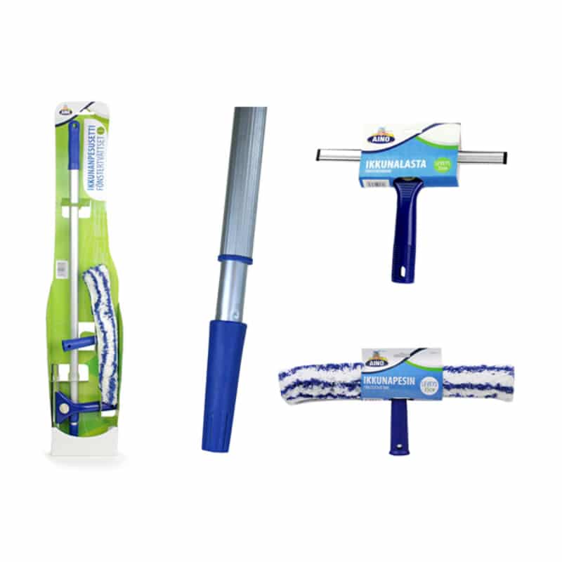 Aino ikkunanpesusetti on joka kodin luottotuote! Pesimessä on teleskooppinen ja kevyt alumiinivarsi. Tuotteeseen kuuluu lisäksi ikkunapesin sekä ikkunalasta.