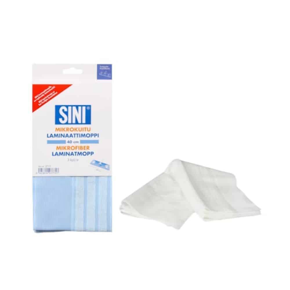 Kuivana mikrokuituinen laminaattomoppi kerää ja sitoo pölyn. 40 cm leveä laminaattimoppi sopii Sini-monitoimimoppiin. Mikrokuitulaminaattimoppia on saatavilla sinisenä ja valkoisena. Pakkaus sisältää kolme moppia.