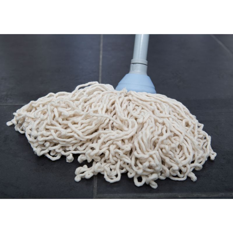 - Laske moppi lattialle pyöräyttäen hapsut auki.