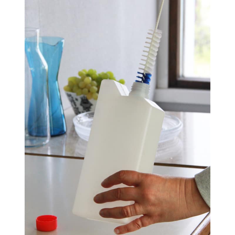 Pitkän kahvan ja pyöreän muotoilun ansiosta tuotteella puhdistuu hankalatkin kohteet, kuten kahvinkeittimen vesisäiliön nurkat.