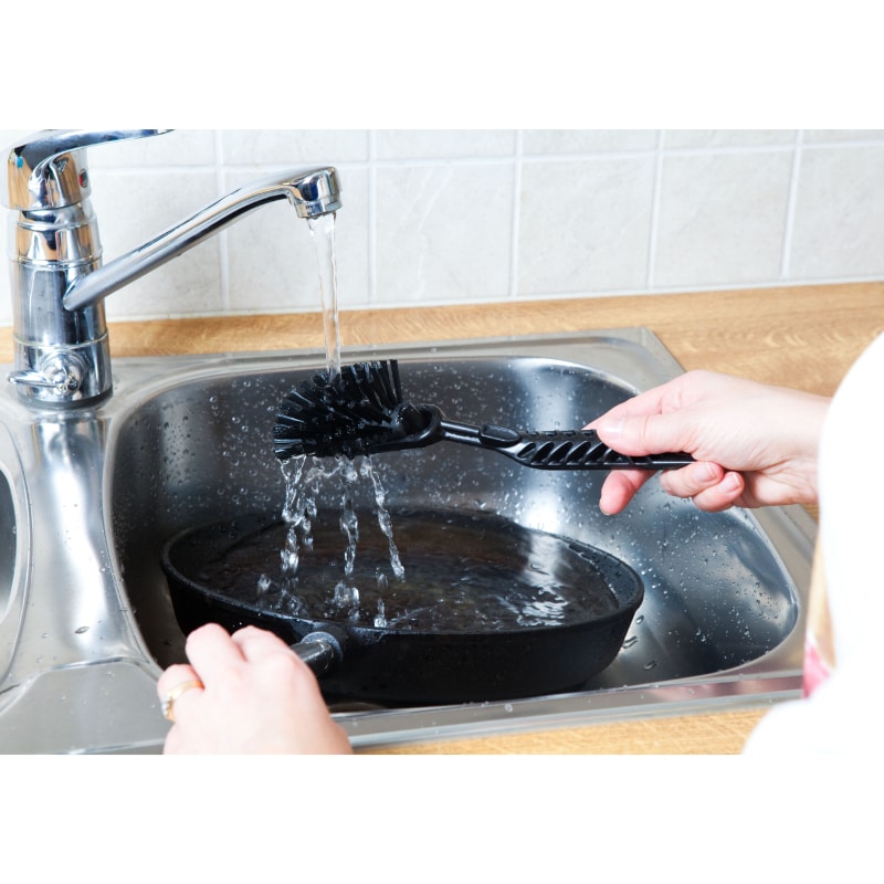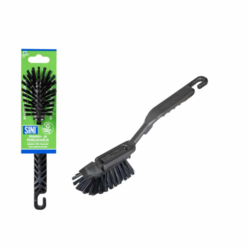 Harjas on tehokas, mutta hellävarainen, joten harjaa voi käyttää myös pinnoitettujen paistinpannujen