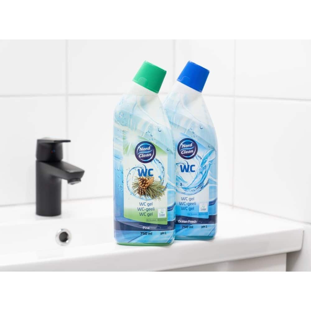 Nord Clean wc geeli on tehokas WC-altaan, pesualtaan, fajanssi- ja kaakelipintojen puhdistukseen. Poistaa tehokkaasti ruosteen, lian, kalkin ja kalkkisaostumat. Geelimäinen koostumus pysyy hyvin kaltevilla pinnoilla. Tuote on hapan, pH 1-2.
