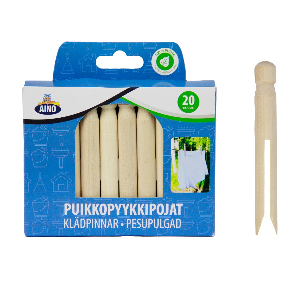 Valitse Aino pyykkipojat, jotka on valmistettu 100 % puusta. Nämä puikot tekevät pyykinripustamisesta helpompaa ja mukavampaa. 🧺