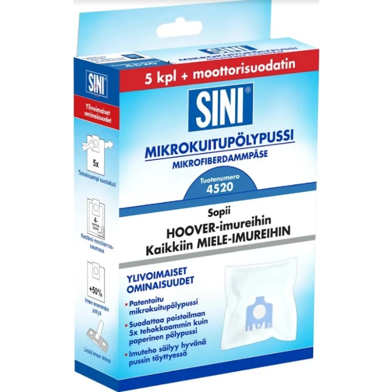 Sini mikrokuitu pölypussi 4520 5 kpl + moottorisuodatin