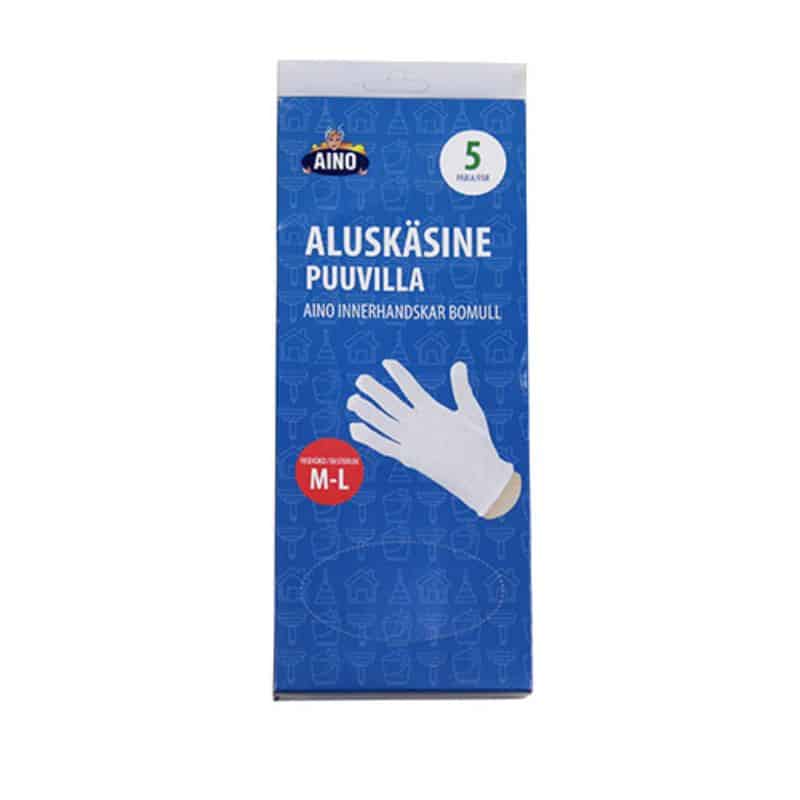 Ohut valkoinen puuvillainen aluskäsine. Materiaali puuvilla. Väri valkoinen. Ohut hanska Koko M-L (YKSI KOKO). Paketti sisältää 5 paria Puuvillakäsine