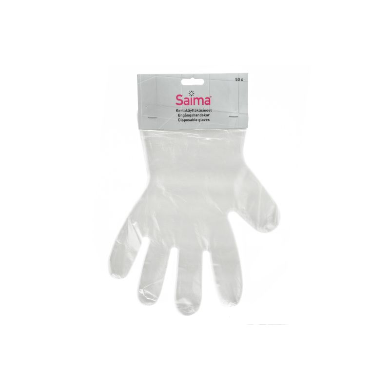 Saima kertakäyttökäsineet ovat käytännöllinen ja hygieeninen ratkaisu monenlaisiin kotiaskareisiin. Ne on suunniteltu suojaamaan käsiäsi kevyeltä lialta, kosteudelta ja puhdistusaineilta tilanteissa, joissa et halua käyttää uudelleen pestäviä suojakäsineitä. Pakkauksessa on 50 kappaletta käsineitä, ja ne on valmistettu ohuesta, mutta kestävistä PE-muovista. Tämä tekee niistä mukavat käyttää ja helpot pukea sekä riisua. Käsineet ovat yhtä kokoa ja sopivat useimmille käsille.