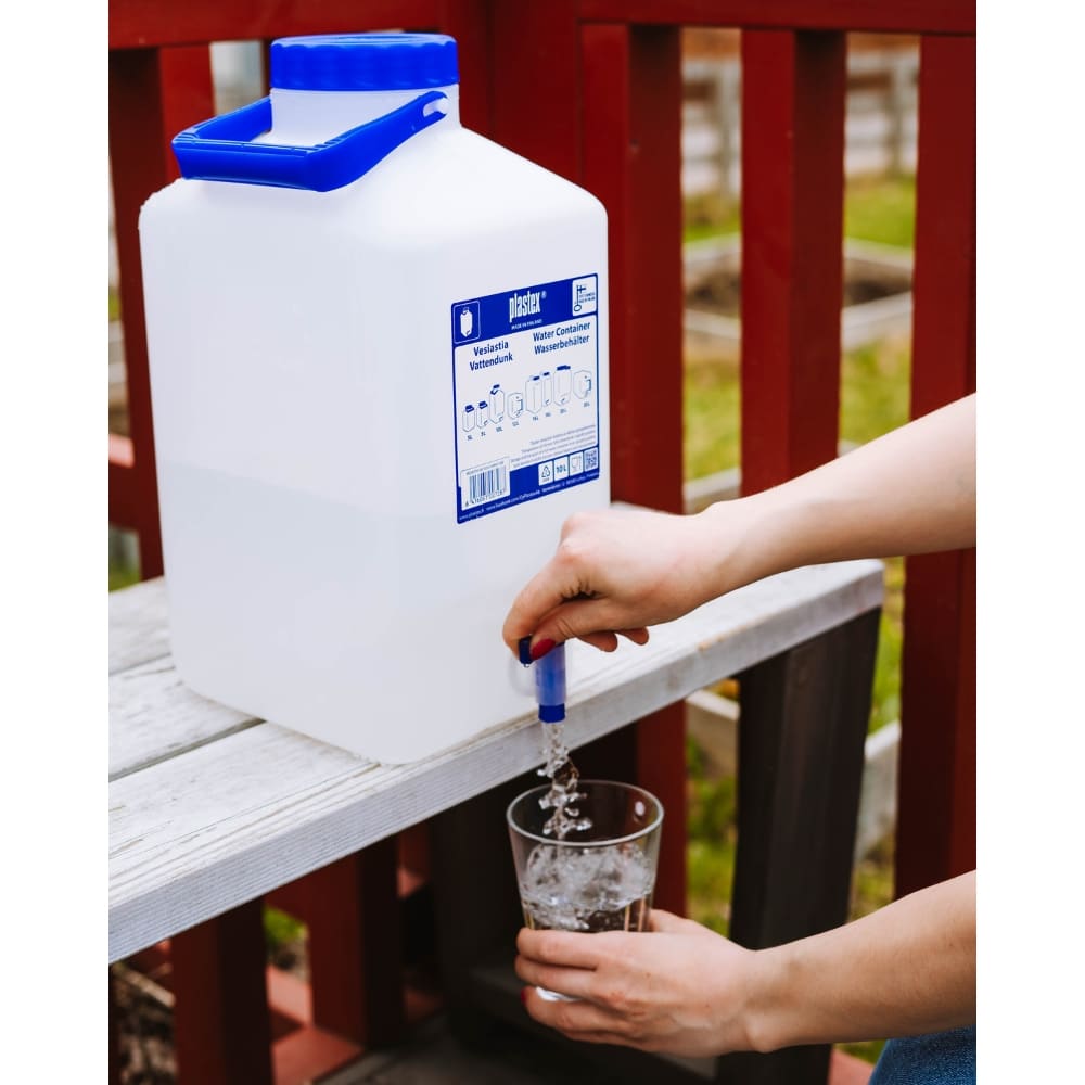 Kanisteri sopii veden lisäksi hyvin mm. myös mehulle, kotiviinille, kotikaljalle. Vesiastia soveltuu mm. mökille, veneeseen, retkeilyyn, matkailuautoon, työmaalle ja vesikatkosten aikana juomaveden kuljetukseen.