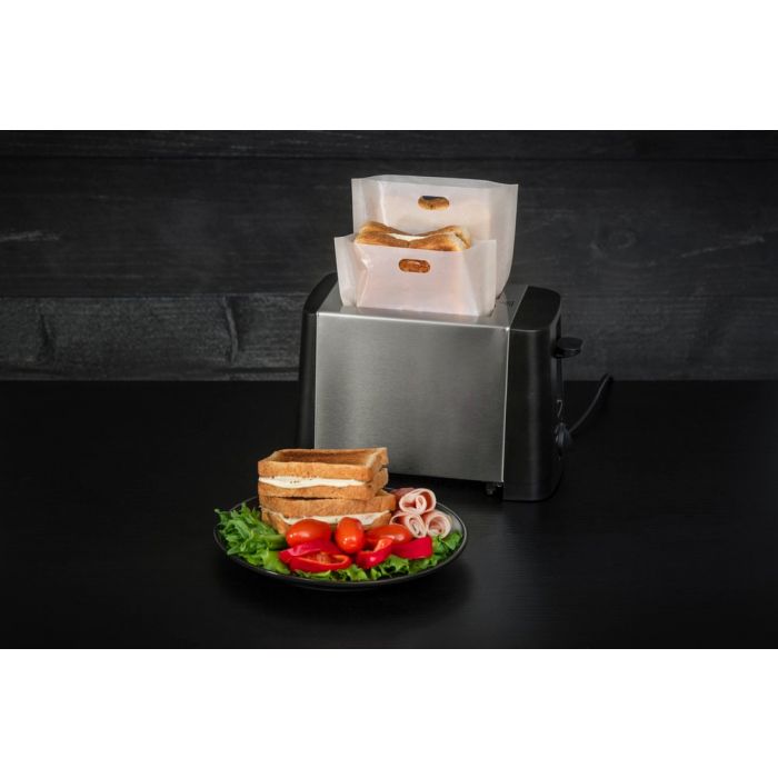 - Paahtotasku 2 kpl max 250°C. Tee täydellinen paahdettu voileipä tavallisessa leivänpaahtimessa tai vaikka voileipägrillissä/ parilagrillissä ilman sotkua. Uudelleen käytettävä jopa 100 kertaa. Pese saippuavedellä tai astianpesukoneen ylähyllyllä. Tarttumaton pinnoite. Koko: 16 x 16,5 cm. Lämmönkesto max 250°C.