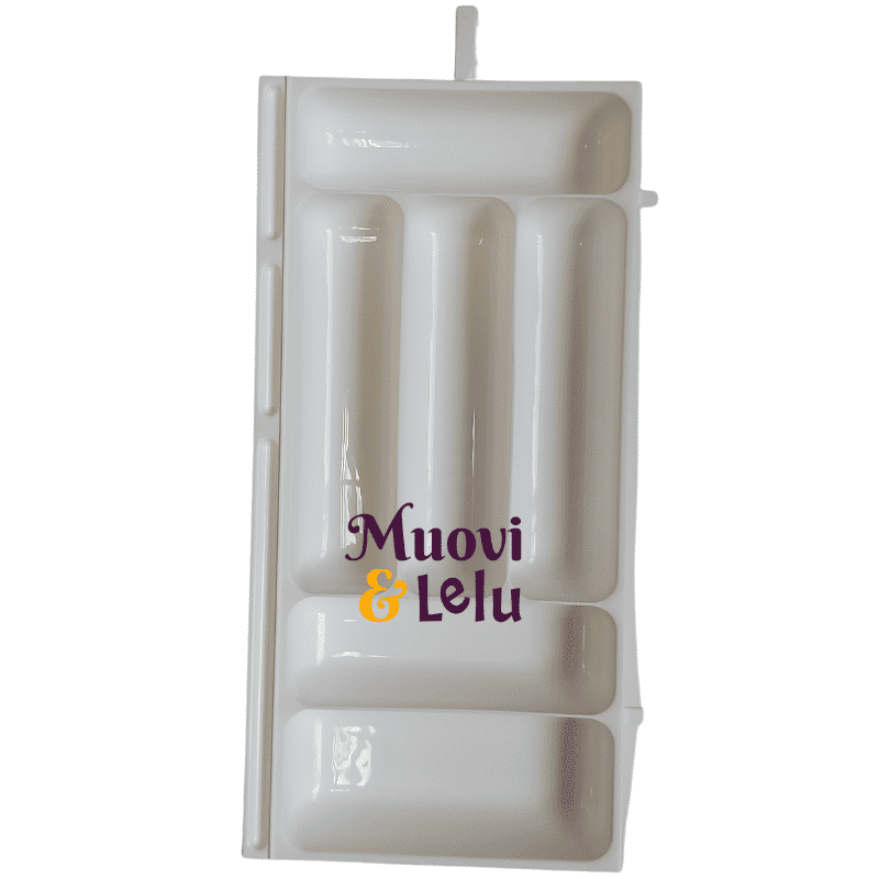 Itse leikkaamalla voi vielä kaventaa yhden reunan pois, jolloin leveydeksi jää 210 mm. Päädyissä on muoviosat, jotka pitävät laatikkoa paikoillaan. Ne taipuvat tai ne voi myös leikata pois halutessa.