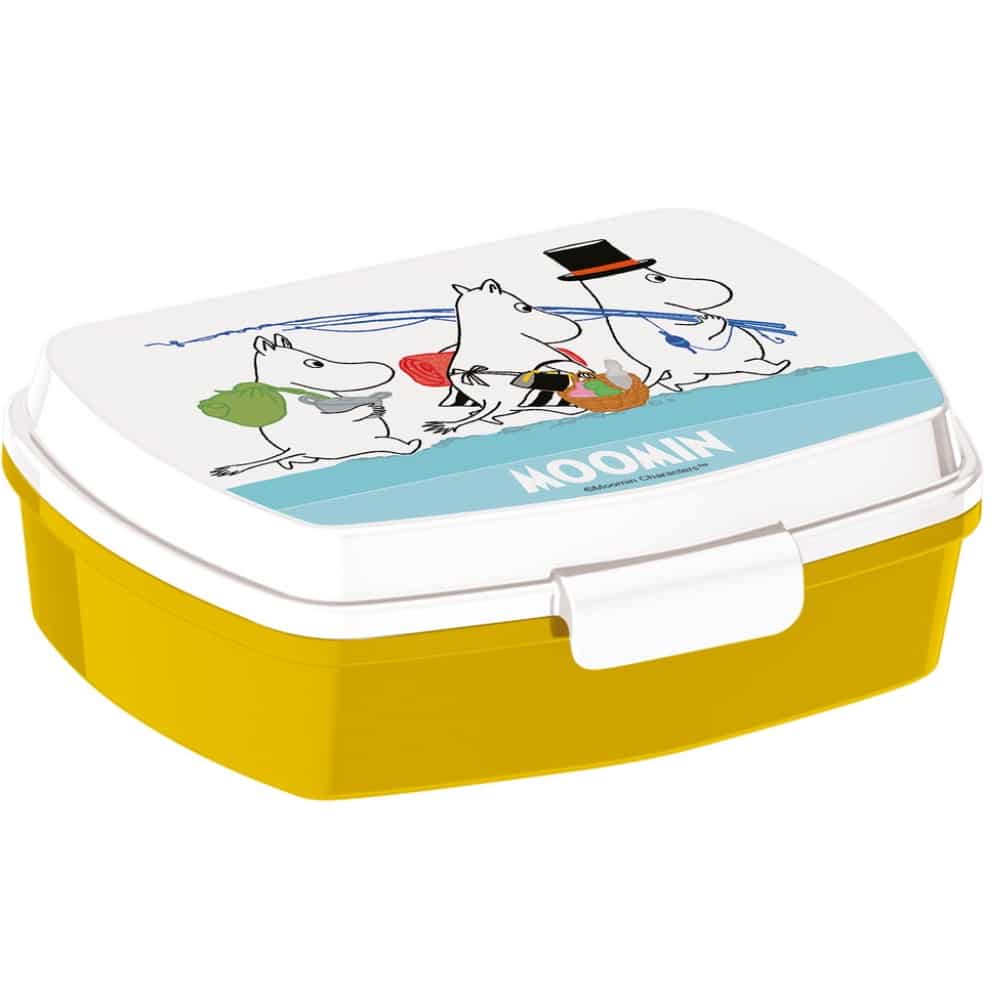 Ihanteellisen kokoinen ja iloinen kelta-valkoinen Muumi-eväsrasia! Kuvituksessa Muumipappa, Muumimamma ja Muumipeikko kiirehtivät onkireissulleen! Eväsrasiassa kuljetat välipalat kätevästi puistoon, päiväkotiin tai vaikka onkireissulle. Eväsrasia on pudotuksenkestävää materiaalia. Rasiaa voi käyttää myös pienten lelujen säilyttämiseen ja kuljettamiseen.