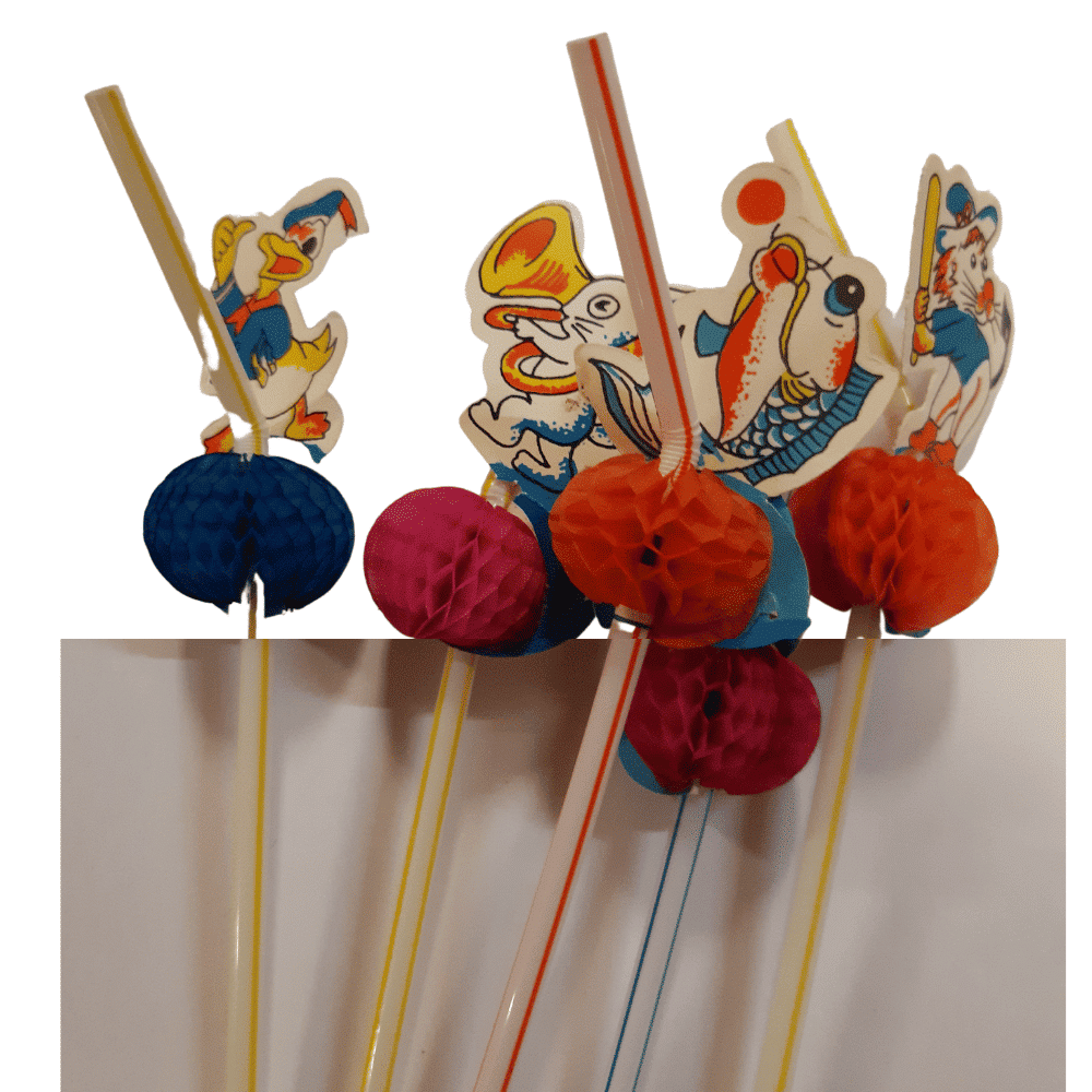 50 eläinkoristeista mehupilliä. Hauskat eläinaiheiset muovipillit lastenkutsuille. Haitaripilliä voi taivuttaa, helppo juoda!