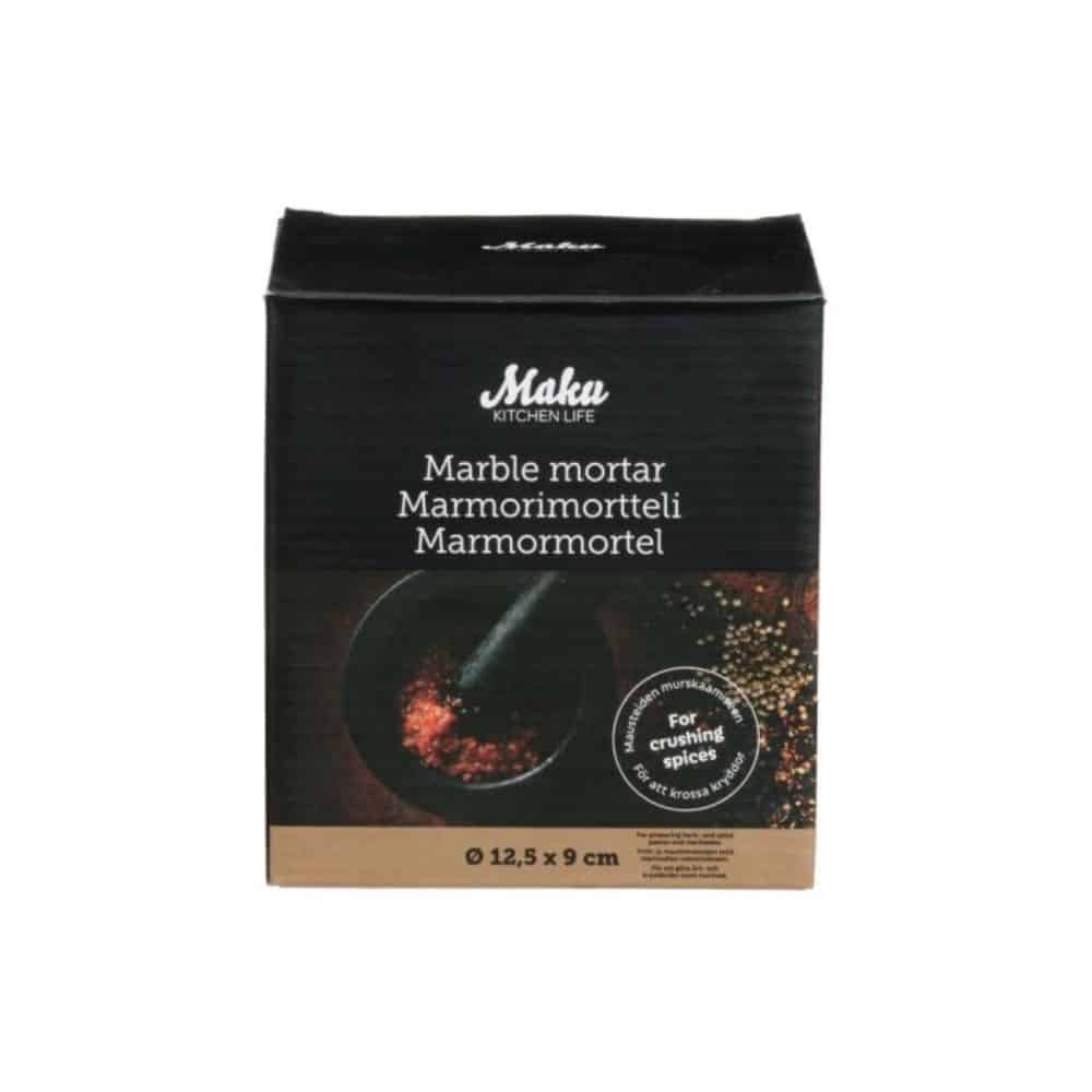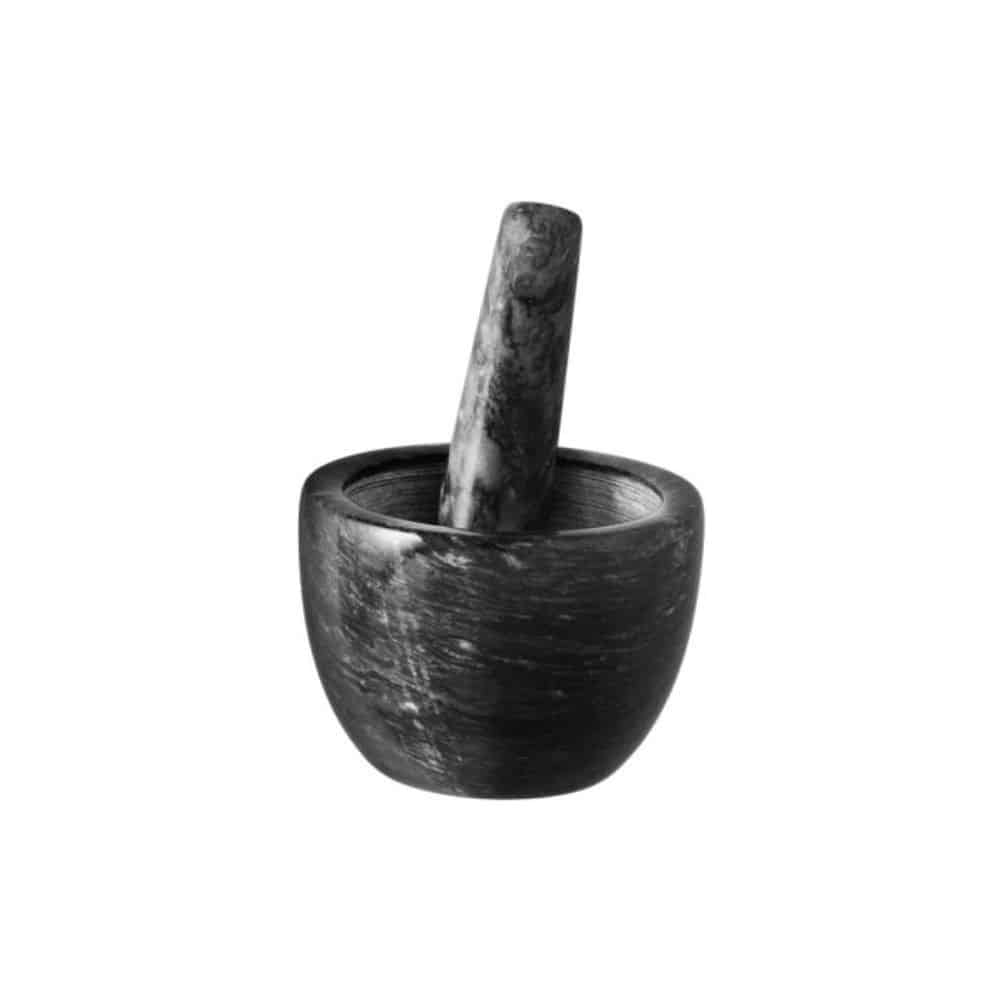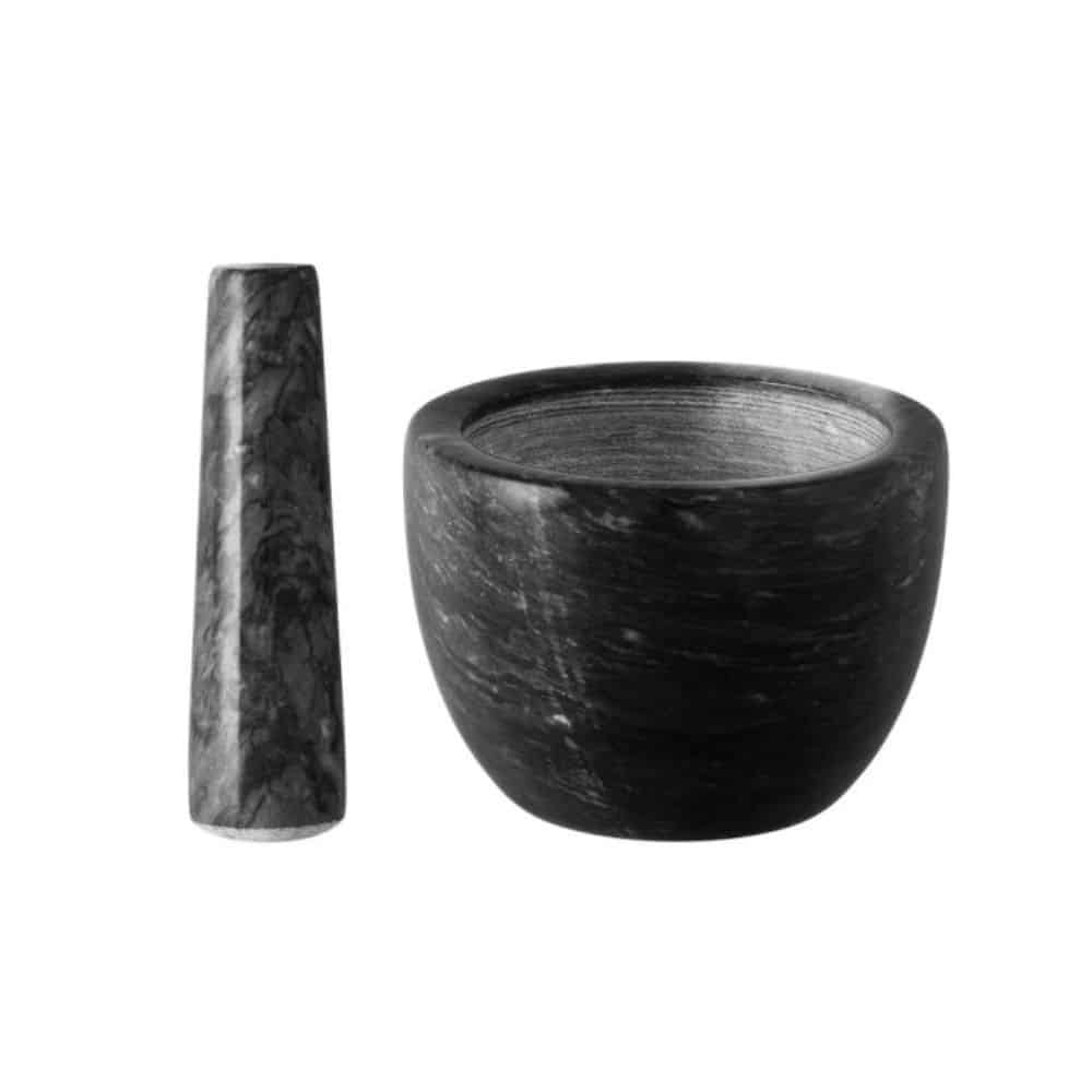 Murskaa mausteesi, tee maustetahnoja tai marinadeja. Mortteli on keittiön kuningas mitä tulee maustamiseen ja marinoimiseen. Mausteiden ja yrttien murskaaminen vapauttaa niiden sisältämät herkulliset aromit ja öljyt. Tyylikäs musta marmorista valmistettu mortteli on myös keittiön kaunistus. Käsinpesu.