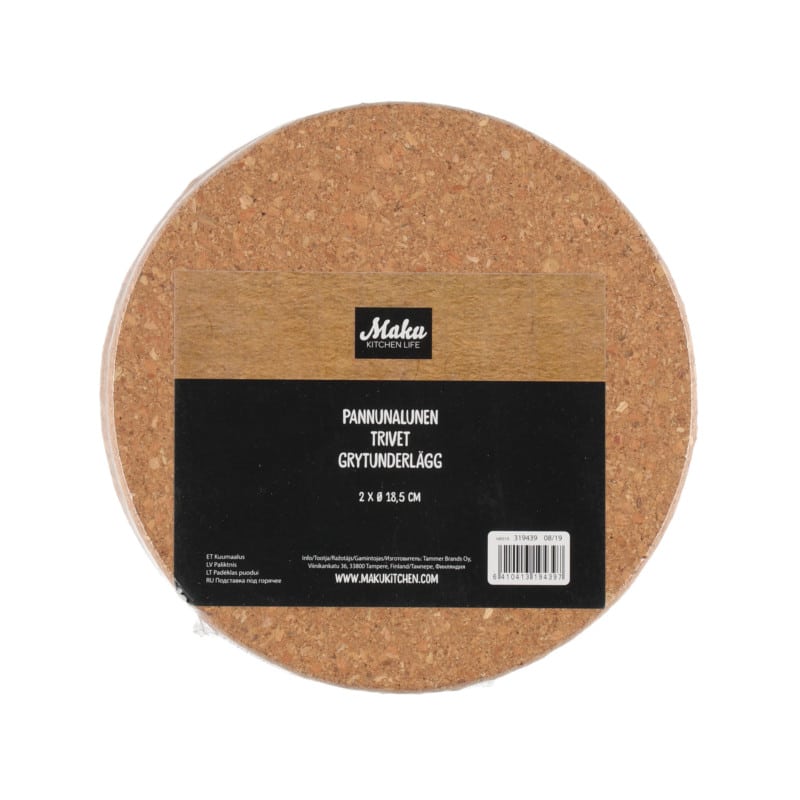 Suojaa pöytäsi pinnat kuumilta pannujen ja kattiloiden pohjilta. Uusiutuvasta korkkimateriaalista valmistettu klassinen pannunalunen.