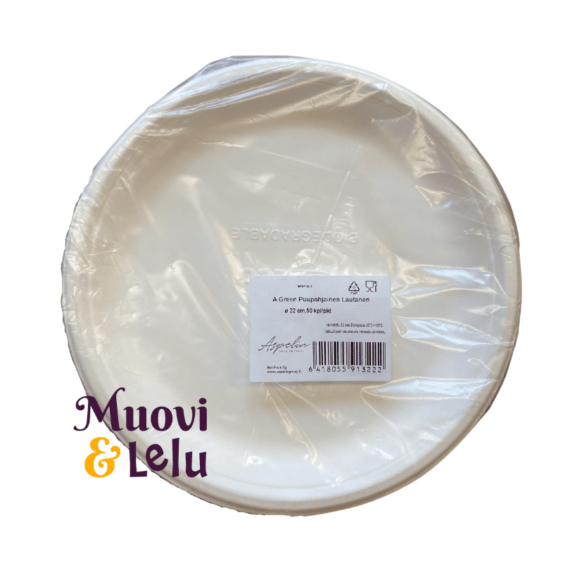 Kertakäyttölautanen puupohjainen 22 cm 50 kpl