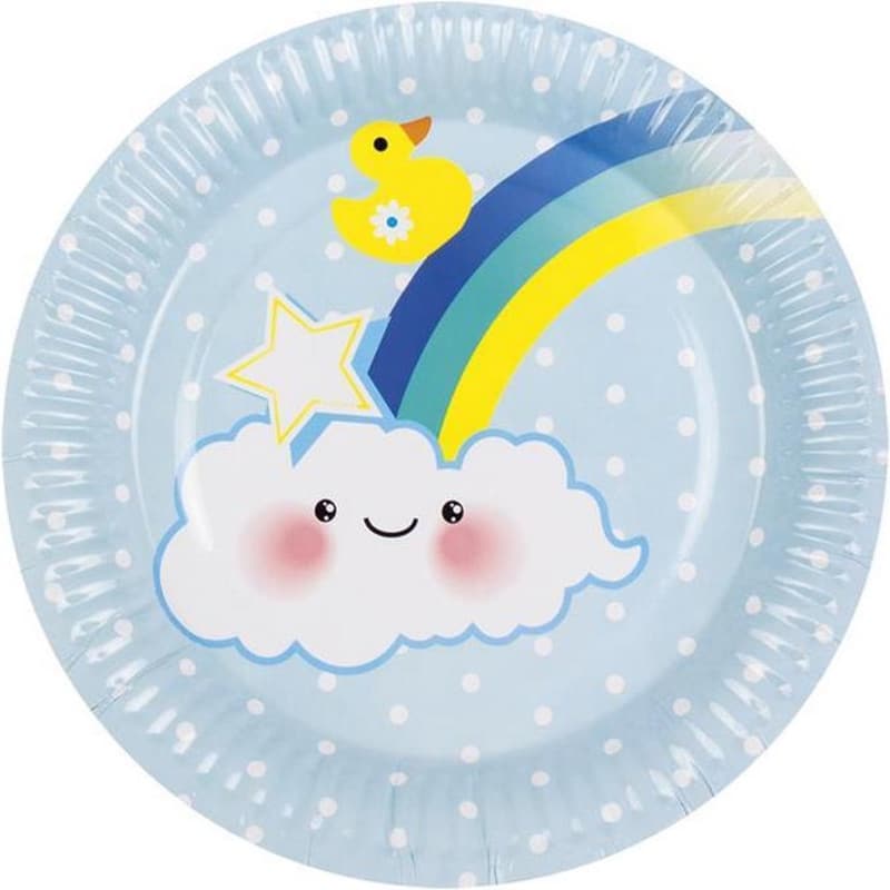 - Isot vaaleansiniset Baby Boy -pahvilautaset Showereihin tai vastasyntyneiden juhliiin! Pakkauksessa on 6 kpl 23 cm halkaisijaltaan olevaa pahvilautasta.