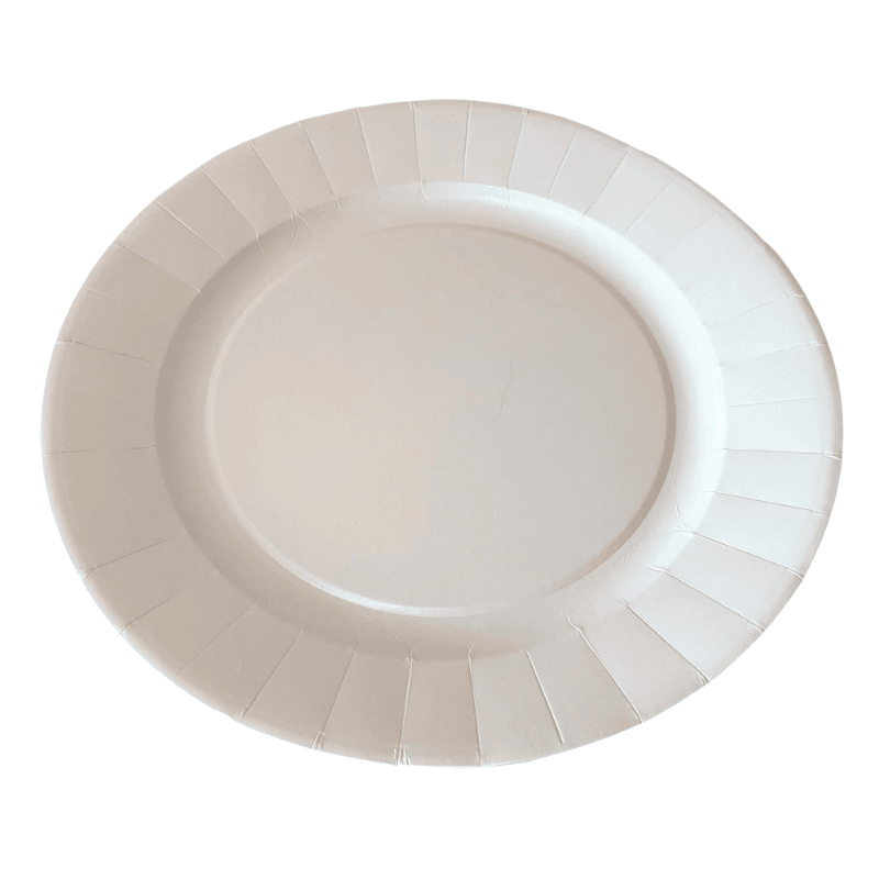 - Rosa matala valkoinen pizzalautanen, biohajoava lakkapinta. Kertakäyttöinen lautanen on Suomessa valmistettu, suomalaisesta valkaistusta kartongista.