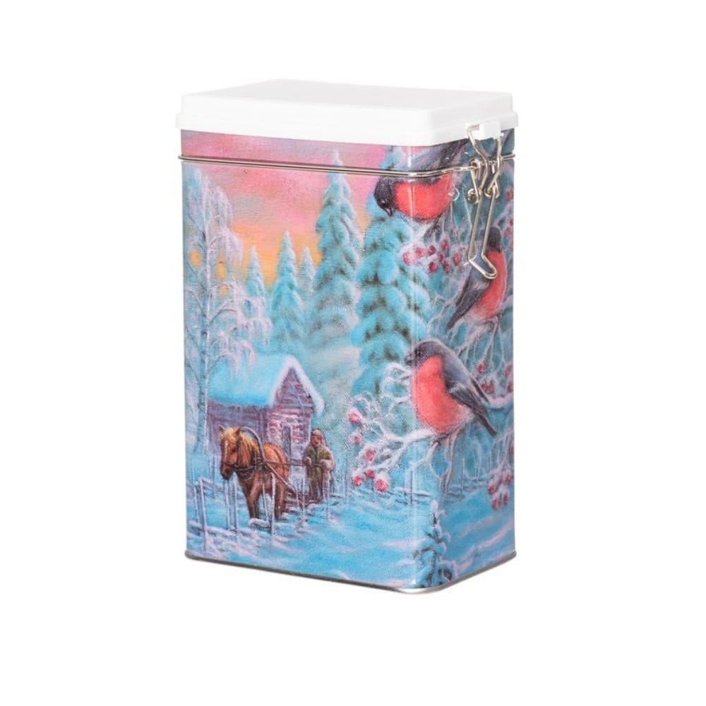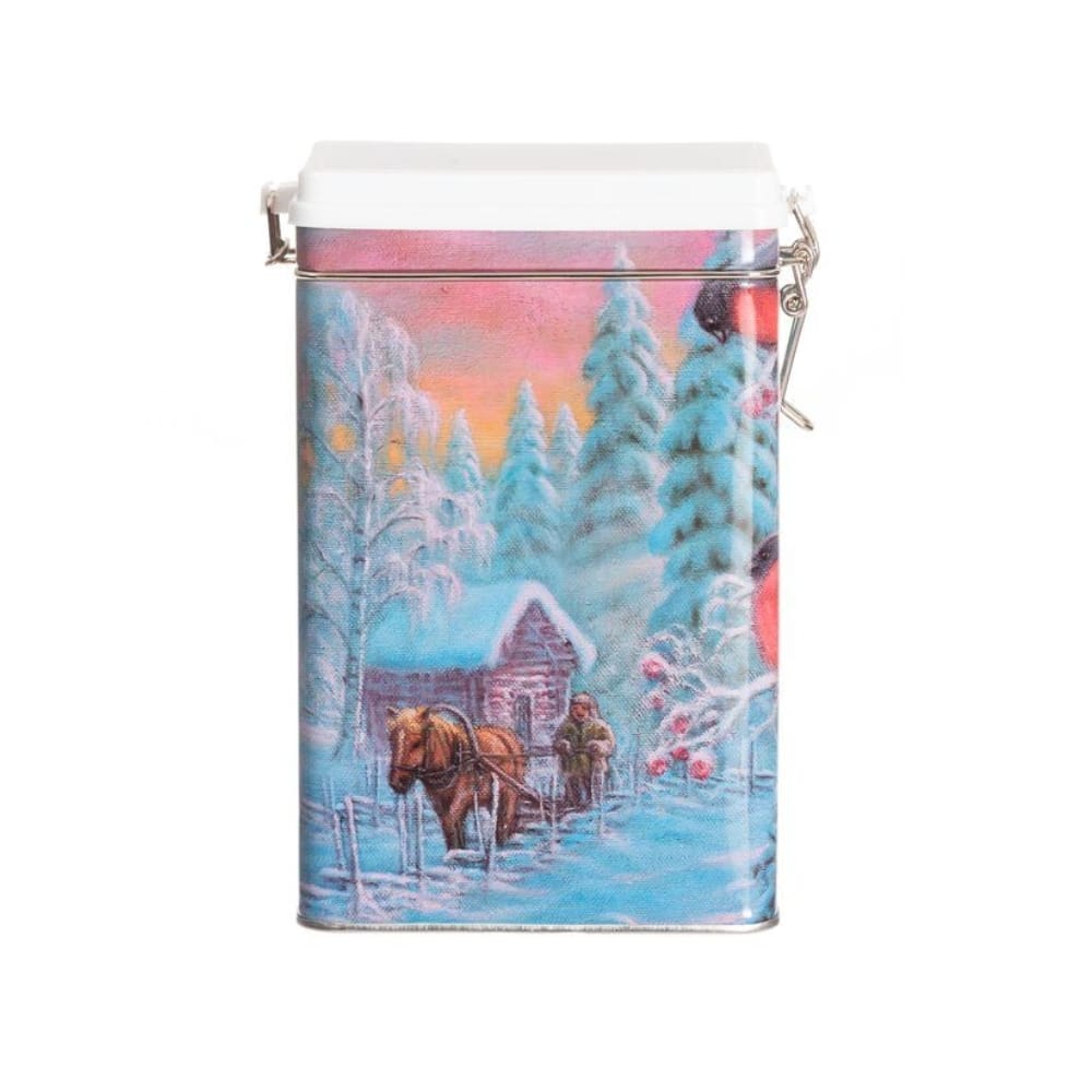 Perinteinen kahvipurkki nostalgisella rekiretki-aiheella. Ihastuttava lisä joulun sisustukseen tai yleiskäyttöön. Erinomainen lahjaidea.