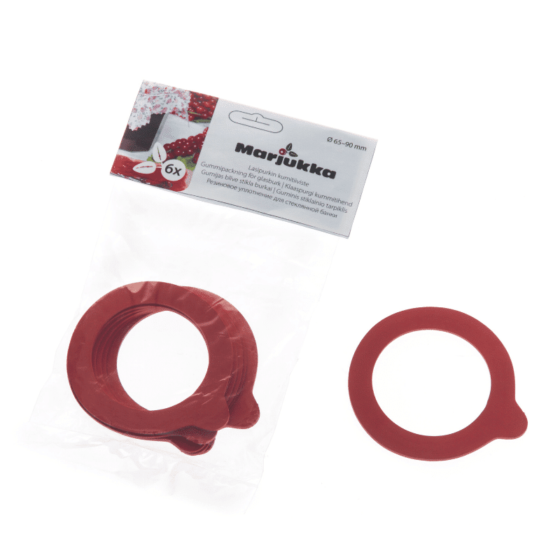 Elintarviketestattu vaihtotiiviste patenttipurkkiin. Desinfioi kumitiiviste aina ennen käyttöä keittämällä enintään 10 minuuttia. Halkaisijat 65-90 mm. Max +70 astetta.