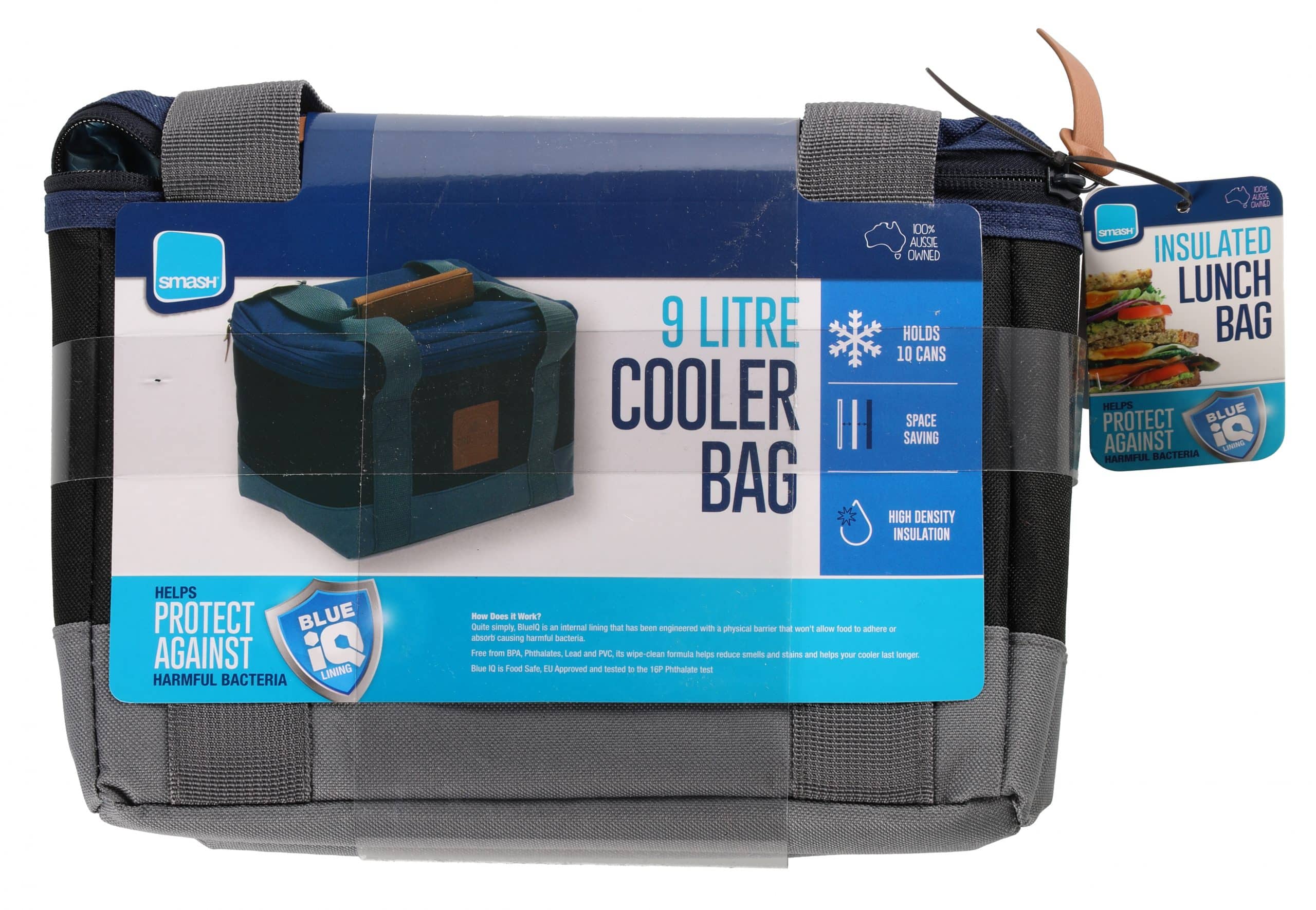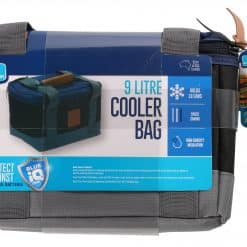 Pehmeä 9 litran kylmälaukku on tyylikäs tummansininen kylmälaukku, jossa on harmaita yksityiskohtia.