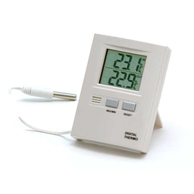 Tämä helmenvalkoinen mittari on tyylikäs peruslämpömittari ulko- ja sisälämpötilan mittaukseen. Kotelo on helmenvalkoinen ja näppäimet hopeanharmaat. Mittarissa on maksimi- ja minimi-lämpötilojen muisti ja 3 metrin anturijohto.