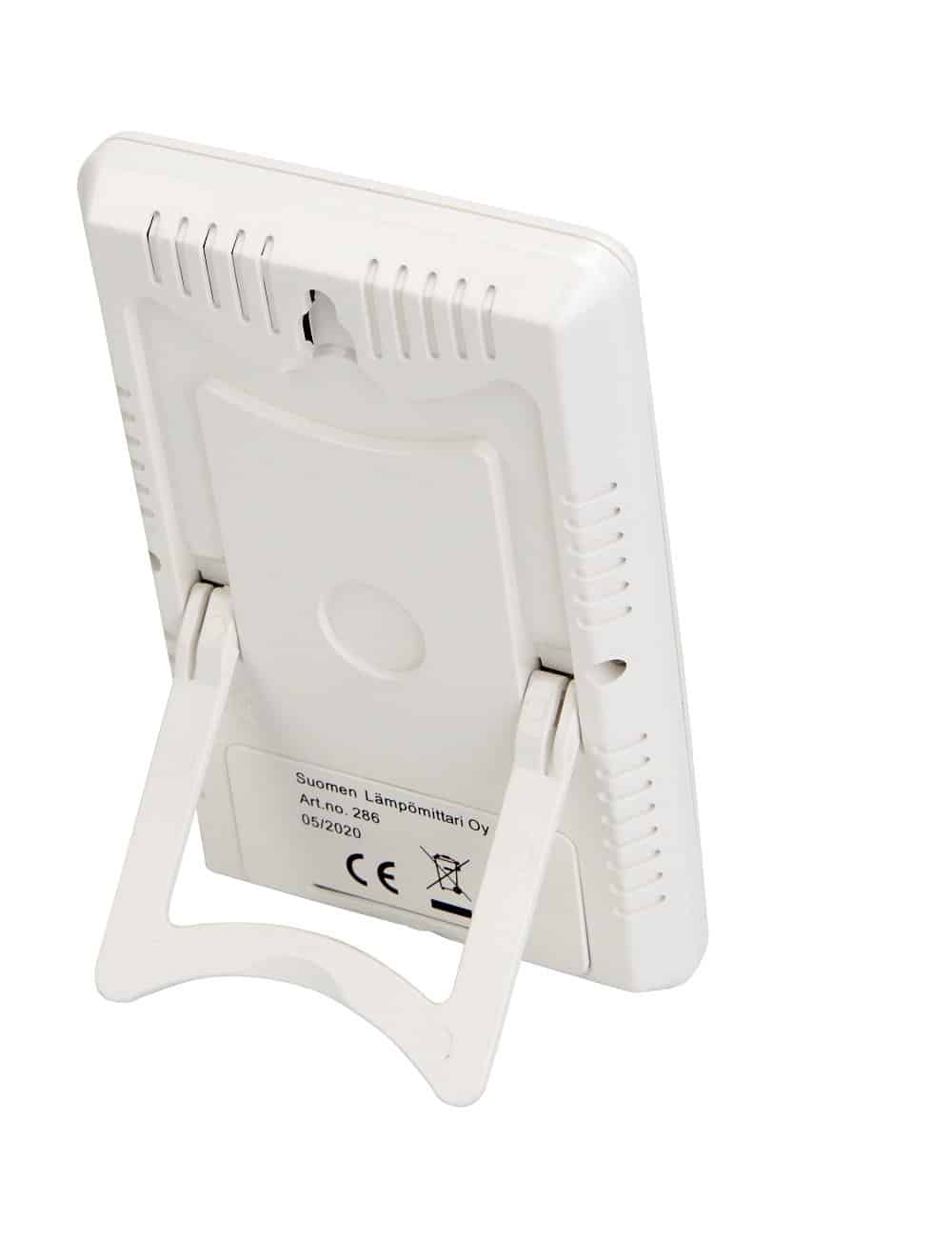 Lämpömittarissa 286 on helppolukuinen iso näyttö. Lämpötilan lukeminen onnistuu hämärässäkin, kun painat napista taustavalon päälle. Maksimi- ja minimitoiminnon avulla voi seurata, kuinka kylmää tai lämmintä on parhammillaan ollut. Anturijohdon pituus on noin kolme metriä, joten näyttöä ei tarvitse jättää ihan ikkunan viereen.