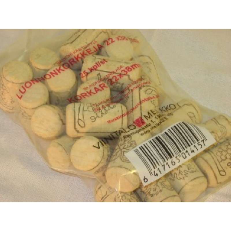 Luonnonkorkki 22 x 38 mm viinipulloon