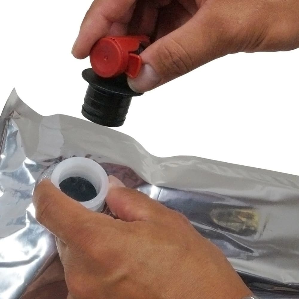 Viinipussi hanalla 3 l 5 kpl extra-laatu – Bag-in-box -materiaali on monikerroksinen. Pussi sopii mehun, viinin ja muiden ei-kaasumaisten juomien pakkaamiseen. Mehun ja viinin säilyttämiseksi paremmin pussissa on hopeanhohtoinen kerros hapenestoa varten ja parempi suoja valolta.