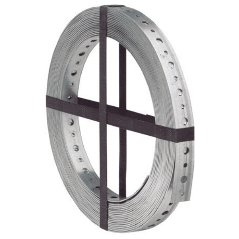 12mm x 0,7mm x 3 metriä galvanoitu teräs kiinnitysvanne puurakenteiden kiinnittämiseen, liittämiseen ja sitomiseen.