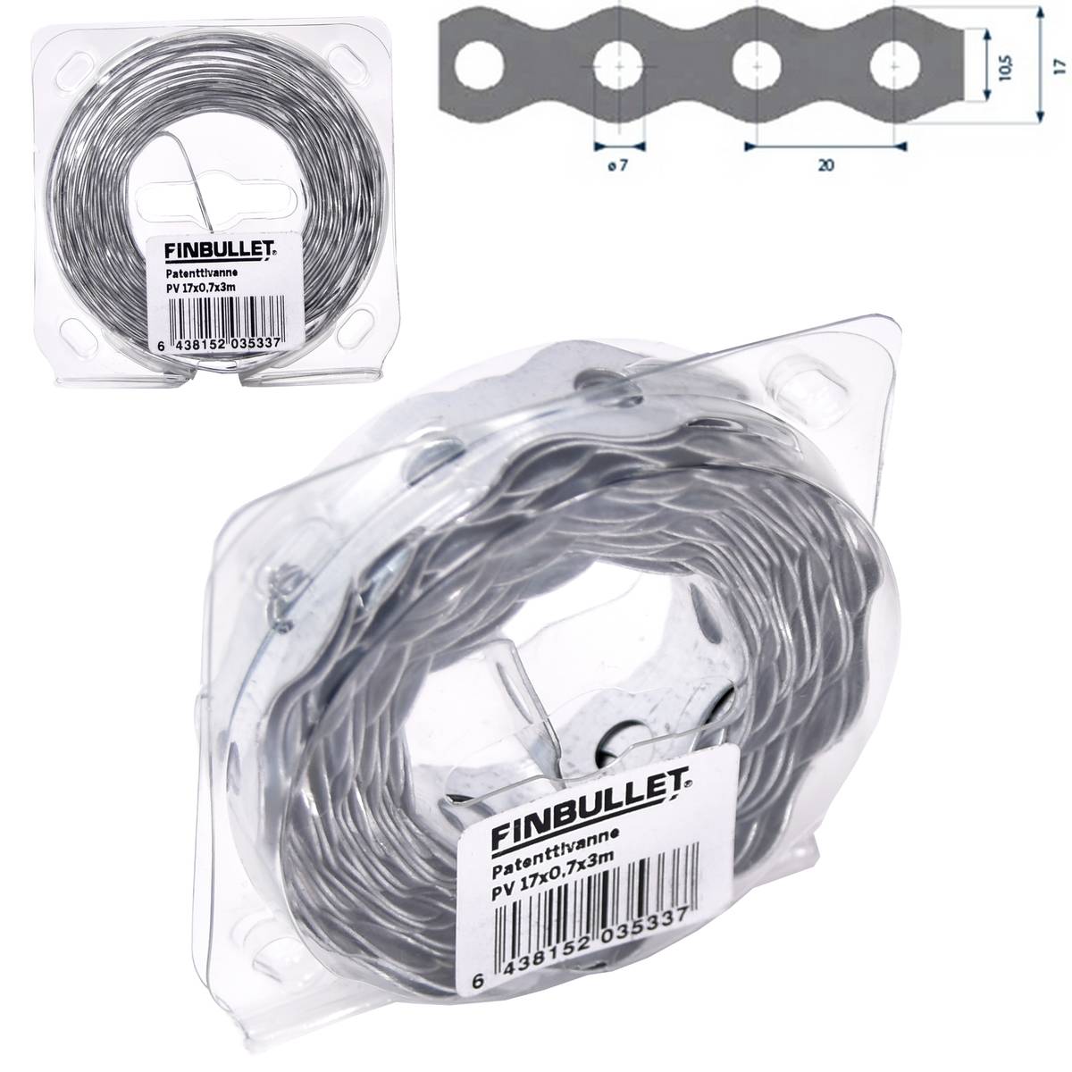 - Leveys 17 mm x paksuus 0,7 mm.