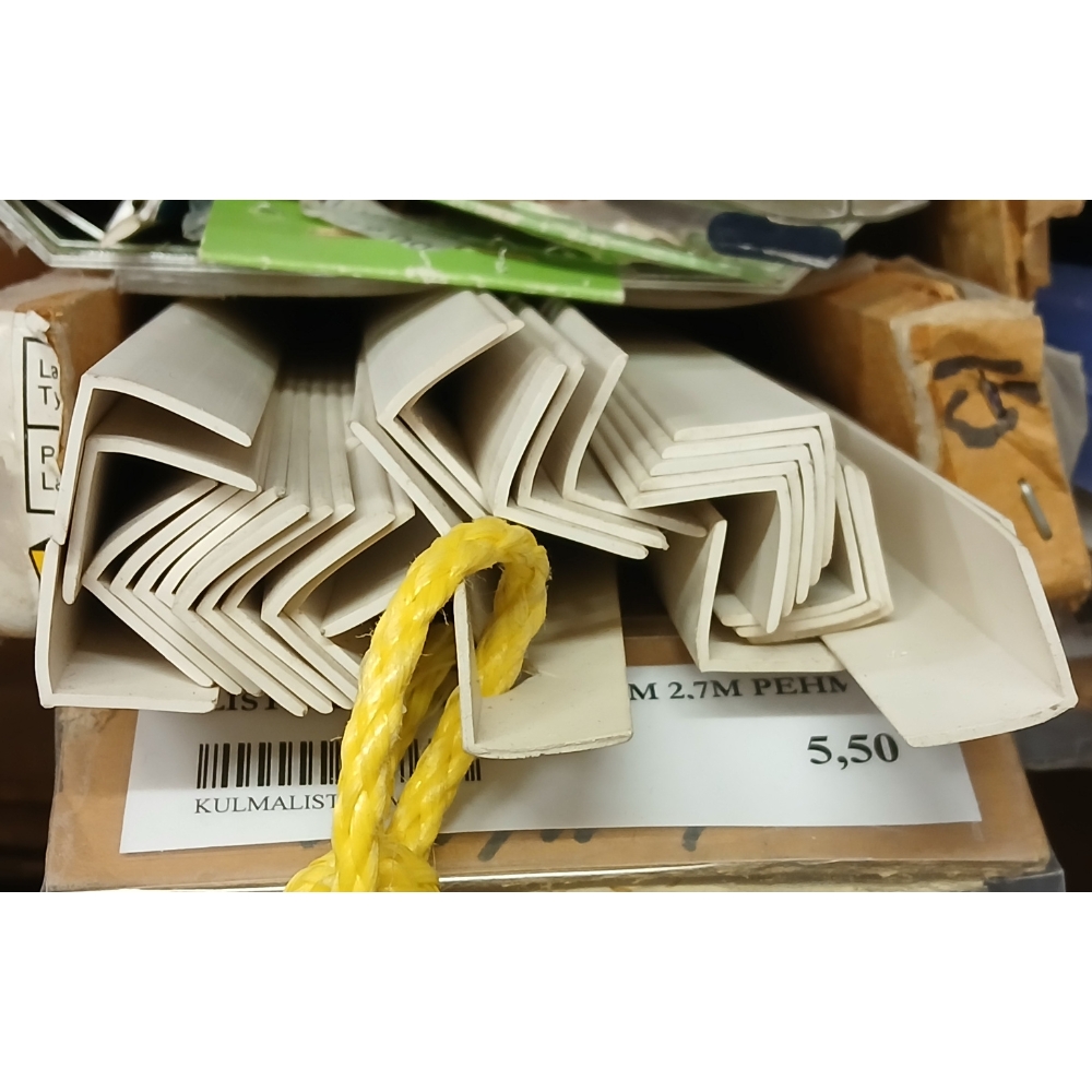 Alin hinta 30 päivän ajalta ( 31.3.2025 ): 5,50 €Lista kulmalista 15mm 2,7m pehmeä valkoinen