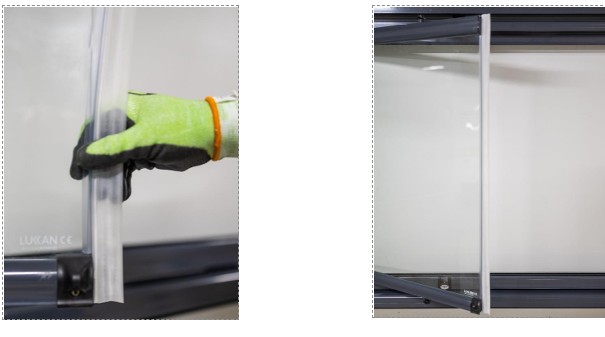 Asennetaan lasin reunaan. Tuotetta käytetään L tai U muotoisen lasituksen kulmassa.