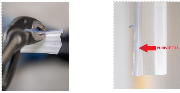 Tuote leikattava mittaansa, lasitukseen sopivaksi. (Katso asennusohje)