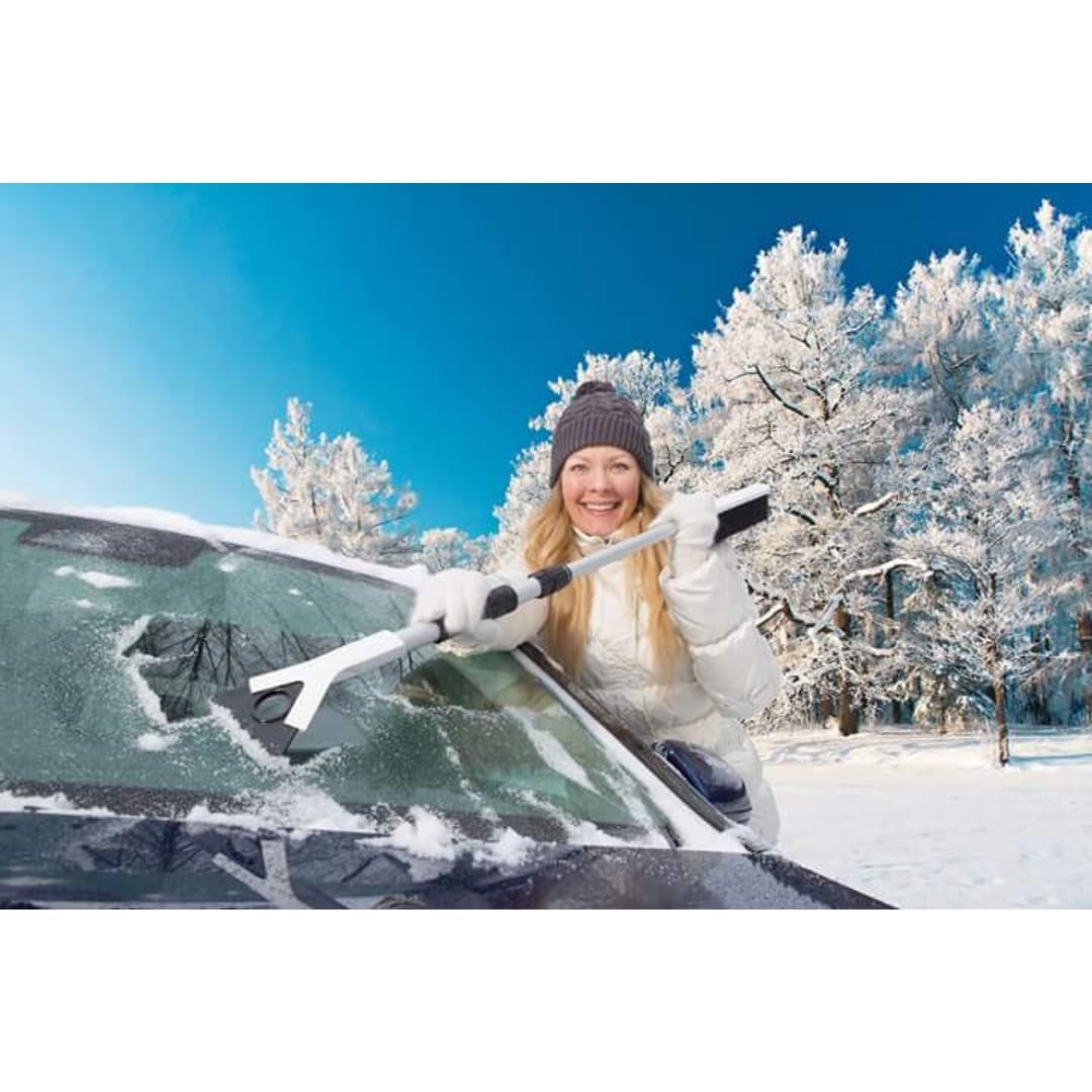 Säädettävä 77-105 cm pitkä Tele-Is -teleskooppilumiharja helpottaa autoilijan lumisia ja jäisiä aamuja.