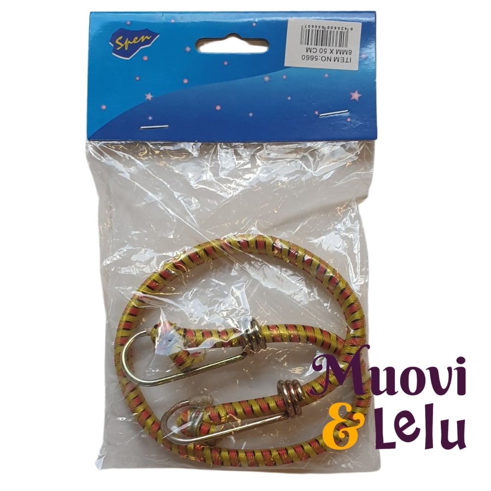 Mustekala 50 cm erilaisia ovat 50cm pitkiä ja 8mm leveitä mustekaloja tavaroiden kiinnittämiseen. Koukku liikkuu narua pitkin vapaasti ja se on tehty metallista. Koukun terässä muovinen nappi.