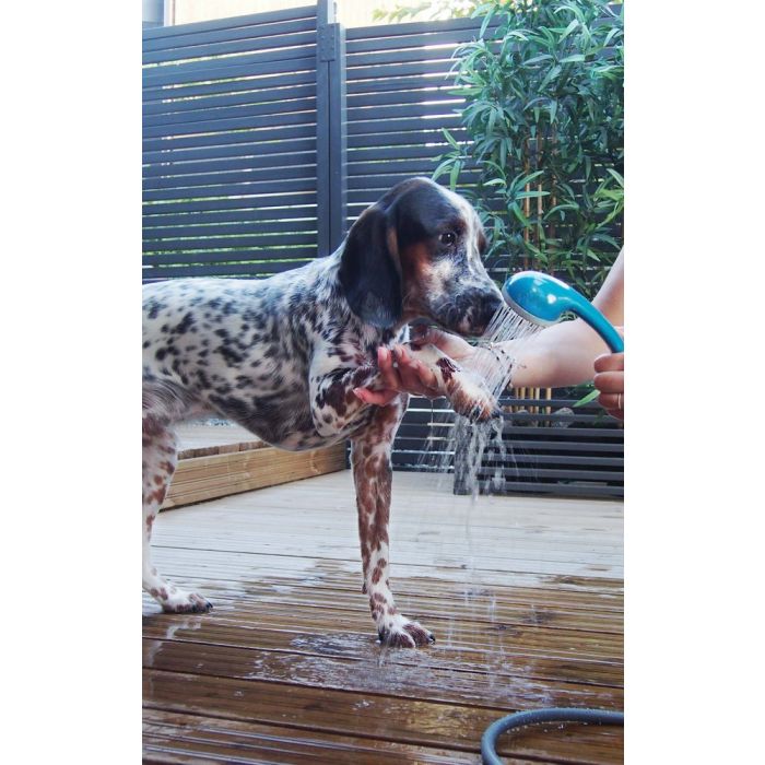 Aseta pumppu vesiastiaan ja kytke se päälle. Yhdellä latauksella saat jopa yhden tunnin käyttöaikaa. Mukana toimitetaan myös suihku pidike, jonka voi käyttökohteesta riippuen kiinnittää imukupilla, kiinnityskoukulla tai kiinnitysruuveilla.