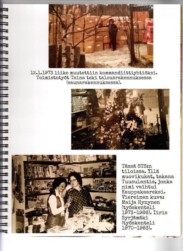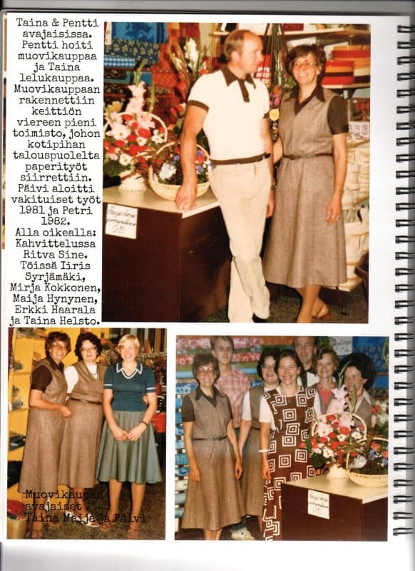 Kolmenkymmenen viime vuoden aikana lukuisat pienet samanlaiset kaupat ovat lopettaneet toimintansa. Kauppamme ei ole kultakaivos, mutta työllistää seisemisen ihmistä ja lisäksi meidät, vähän liikaakin. Yritämme pysyä ajassa ja kilpailussa mukana ettemme ole entisiä kauppiaita. Kiitos kuuluu ihanille asiakkaillemme! Jotkut ovat uskollisia asiakkaita ensin itselleen, sitten lapsilleen, lapsen lapsille ja lastenlasten lapsille. Ja kaikeksi onneksi saamme ihan uusiakin asiakkaita!