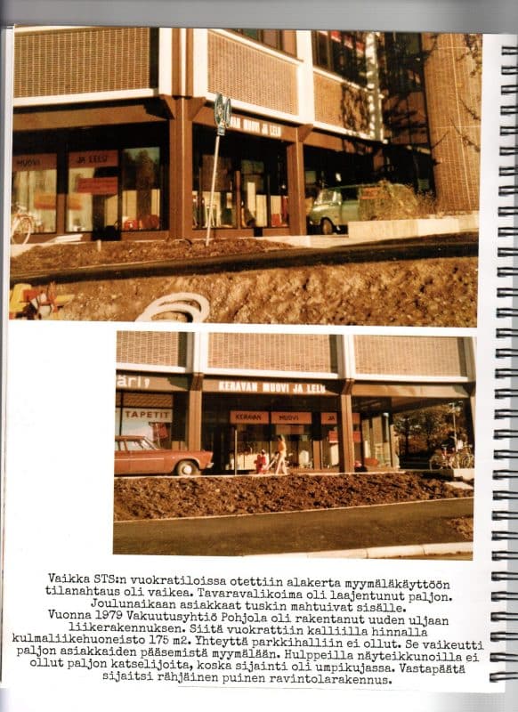 Jo parin vuoden kuluttua pääsimme muuttamaan upeisiin STS-pankin tiloihin kahteen kerrokseen. Parasta oli suuret näyteikkunat. Rakennus on edelleen hyvässä kunnossa 2020-luvulla.